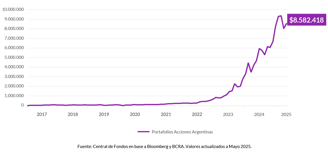El portafolio “Acciones Argentinas” busca capitalizar el nuevo ciclo macroeconómico que atraviesa la Argentina, generando oportunidades atractivas para las empresas locales mediante una estrategia selectiva en fondos que tienen de referencia al índice Merval.