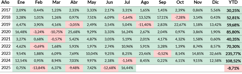 Todo inversor que analice este portafolio debe estar educado financieramente, sabe que los retornos superiores vienen aceptando variaciones del capital en el camino a la generación de las ganancias.