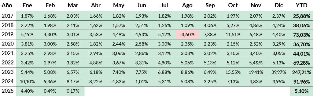 Reconocemos que el entorno económico y financiero actual plantea desafíos, y nuestro objetivo es proporcionar una solución sólida y equilibrada para aquellos inversores que precisan que sus pesos rindan en consonancia a la devaluación del peso frente al tipo de cambio oficial. Mediante la selección de los mejores gestores que seleccionan activamente las oportunidades, buscamos brindar una solución a este desafío de proteger el valor del peso.