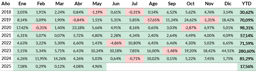 Todo inversor que analice este portafolio debe estar educado financieramente, sabe que los retornos superiores vienen aceptando variaciones del capital en el camino a la generación de las ganancias.