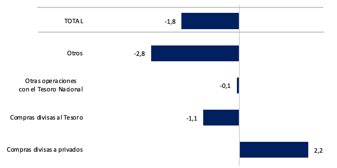 Gráfico nro. 3: Factores de explicación de la base monetaria (mensual, en billones de pesos corrientes)