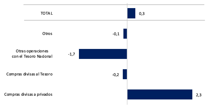 Gráfico nro. 3: Factores de explicación de la base monetaria (mensual, en billones de pesos corrientes)