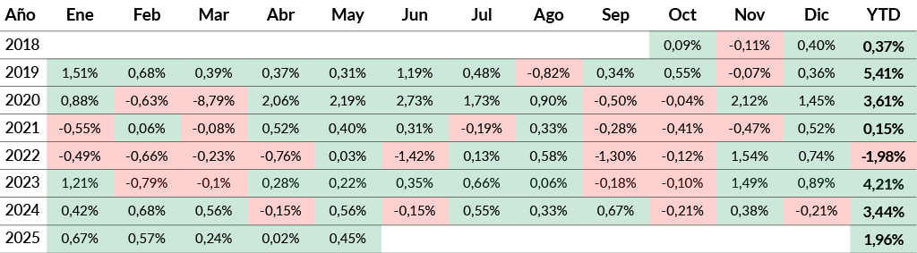 El portafolio Renta Sin Fronteras busca ofrecer retornos atractivos con menor volatilidad que la renta fija argentina. Su peor desempeño mensual fue del -8,7%, mientras que los bonos argentinos en dólares sufrieron pérdidas de hasta el -54,4%. Esto no solo refleja el alto riesgo de estos activos, especialmente para quienes no cuentan con el tiempo necesario para esperar una eventual recuperación, sino también la importancia de diversificar los ahorros, dado que nuestros ingresos y el valor de nuestro patrimonio inmobiliario están estrechamente ligados al ciclo económico argentino.