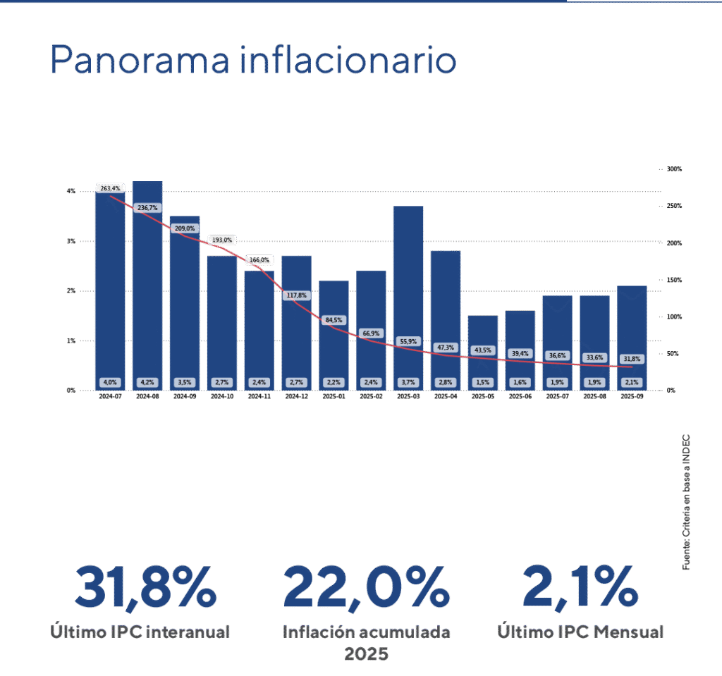 De cara a octubre, se espera que la tendencia se mantenga en torno al 2% mensual, condicionada por la estabilidad cambiaria en un contexto de mayor tensión política y financiera.
