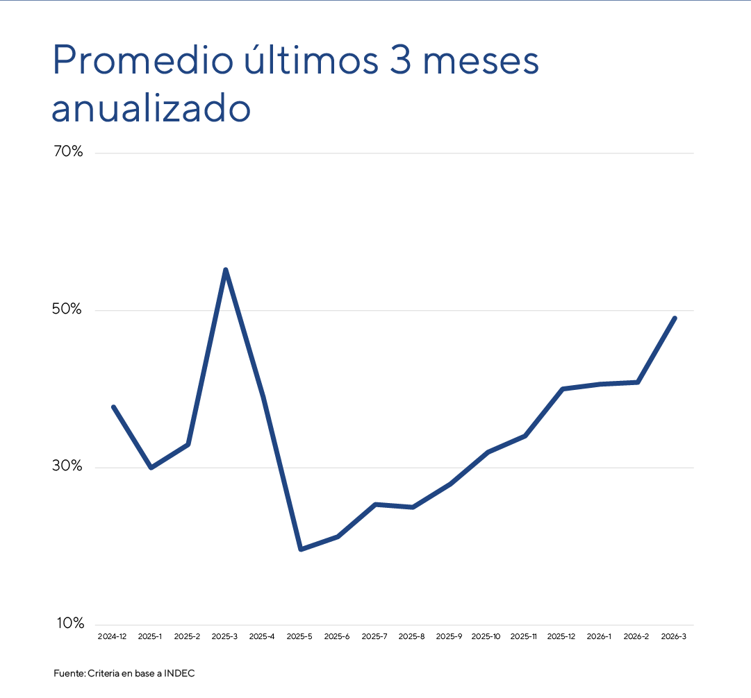 La inflación núcleo se ubicó en 3,2% mensual, acelerándose levemente respecto de febrero, y alcanzó una variación interanual de 33,6%, reflejando la persistencia de las presiones inflacionarias más allá de factores transitorios.